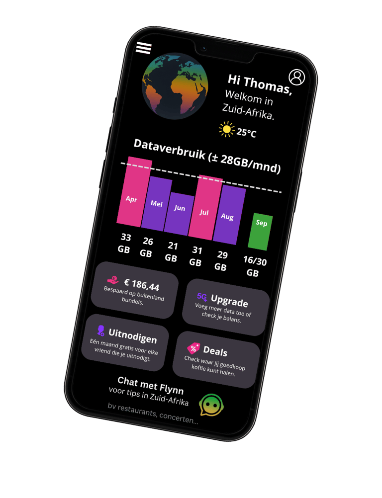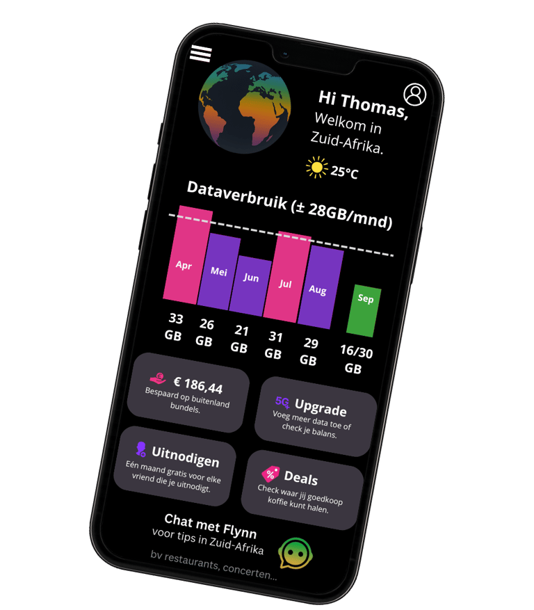 Met fluxx neem je je bundel uit Nederland gewoon mee. Eén oplossing voor thuis en op reis. Geen dure roaming, geen gedoe met simkaarten, maar direct online zodra je landt!